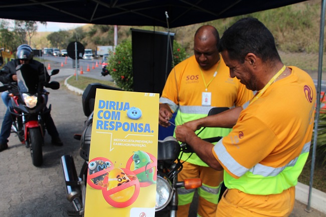 Todo motociclista abordado será orientado pelas equipes da Concessionária. Ele receberá um folheto da campanha ‘Dirija com responsa. Motociclista: prevenção é a melhor proteção’. O material contém dicas de segurança e de manutenção do veículo. As dicas são repassadas através de mensagens lúdicas com a presença de três personagens da campanha, entre eles, o ‘Carecaldo’, aquela má ideia que faz com que muita gente não preste atenção nos problemas da falta de manutenção nos pneus. E o ‘Responsa’, o arqui-inimigo das más ideias, que orienta o usuário da rodovia com dicas para uma viagem segura e tranquila. Além do folheto, serão oferecidos aos motociclistas antena corta-linha, a fim de evitar os perigos trazidos por linhas com cerol comuns nessa época do ano.