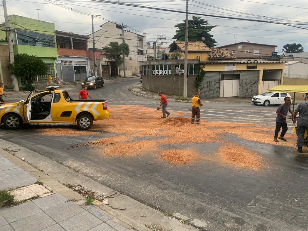 Servidores da Administração Regional Pimentas participaram da operação de limpeza de cerca de mil litros de óleo derramados por acidente pelo veículo de transporte nas ruas Macambau e Muritiba, Jardim Presidente Dutra, nesta quarta-feira (19). O trabalho foi coordenado pela CETESB e pelo Corpo de Bombeiros, com apoio da Secretaria de Transportes e Mobilidade Urbana.