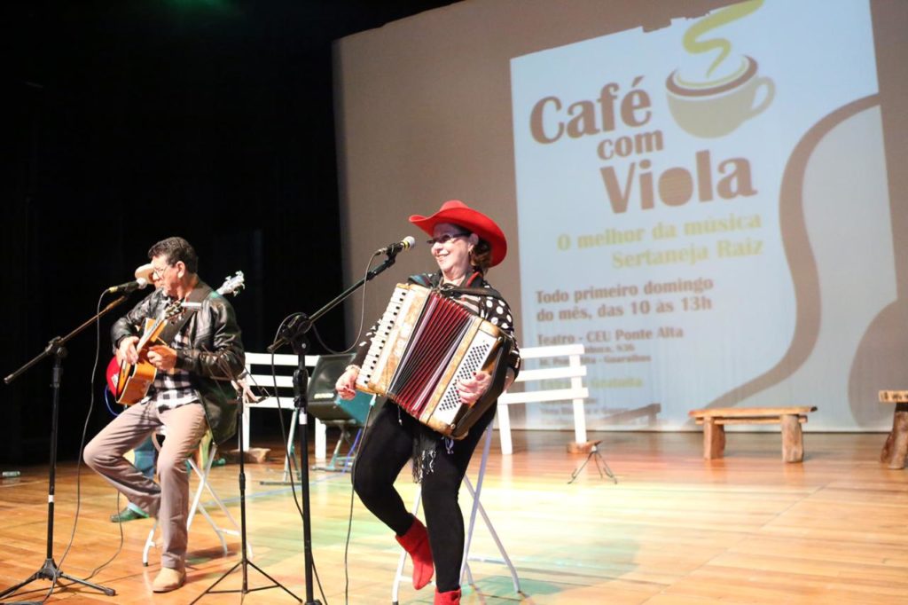 O Teatro do CEU Ponte Alta apresenta edição especial do Café com Viola no próximo domingo (1º), a partir das 10h, grande espetáculo com o melhor da música sertaneja raiz e convidados especiais para celebrar o Dia Internacional da Mulher. Com produção e apresentação de Vera Bianca e coordenação geral de Vera Bianca e Guaru, o evento conta com um saboroso café caipira, bolo de fubá e música da melhor qualidade. O Café com Viola acontece tradicionalmente no primeiro domingo de cada mês com entrada gratuita e classificação livre.