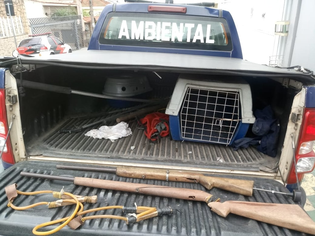 De imediato, os materiais apreendidos e os três homens foram apresentados no 2º Distrito Policial, onde a autoridade de plantão ratificou a prisão em flagrante por porte ilegal de armas, enquadrando no artigo 14 da lei 10.826/03, e por crime ambiental, artigo 29 da lei 9.605/98.