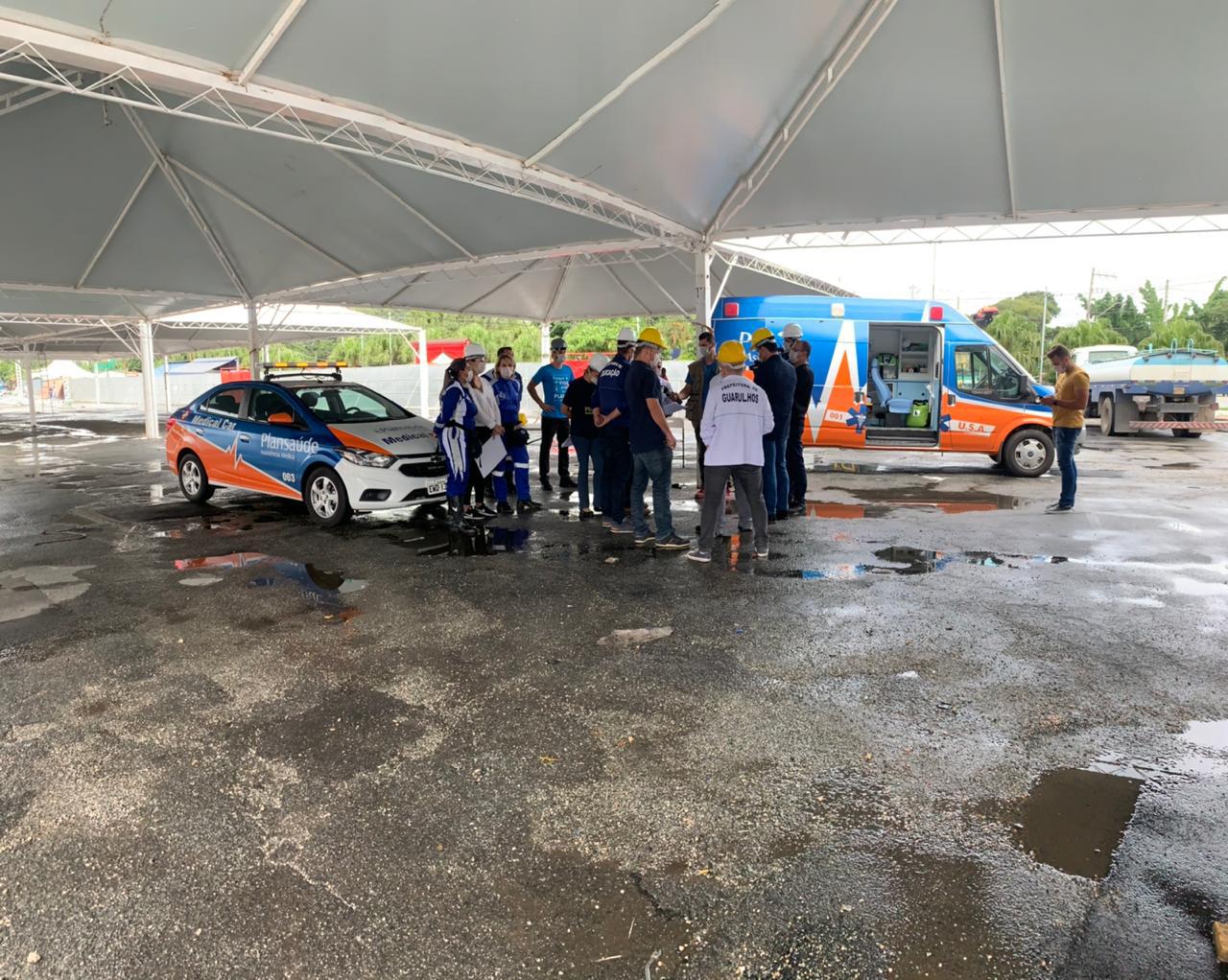 O chefe do Poder Executivo também ressaltou que o Centro de Triagem com atendimento disponível no modelo drive trhu irá funcionar 24 horas por dia com 24 médicos divididos em atividades a cada 12 horas. Ou seja, 12 médicos em turno de 12 horas. A localização do hospital de campanha se deve ao fato de estar próximo do Hospital Geral de Guarulhos (HGG), referência na cidade para o tratamento dos infectados pelo vírus.