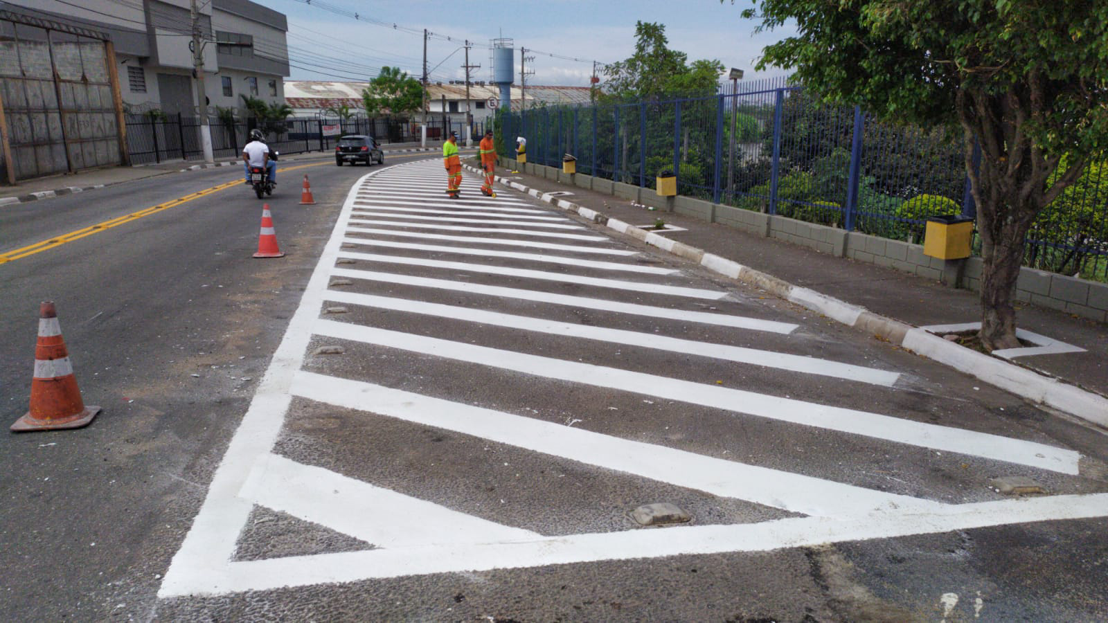 O trabalho de revitalização viária executado pelas equipes da Prefeitura Guarulhos não para. Com a estiagem que tomou conta do mês de março, mais cinco vias de quatro bairros foram beneficiadas com o trabalho de sinalização horizontal: pintura de solo com faixas contínua simples e dupla, indicativos de Pare e Escola, lombadas sinalizadas e faixas de pedestres.