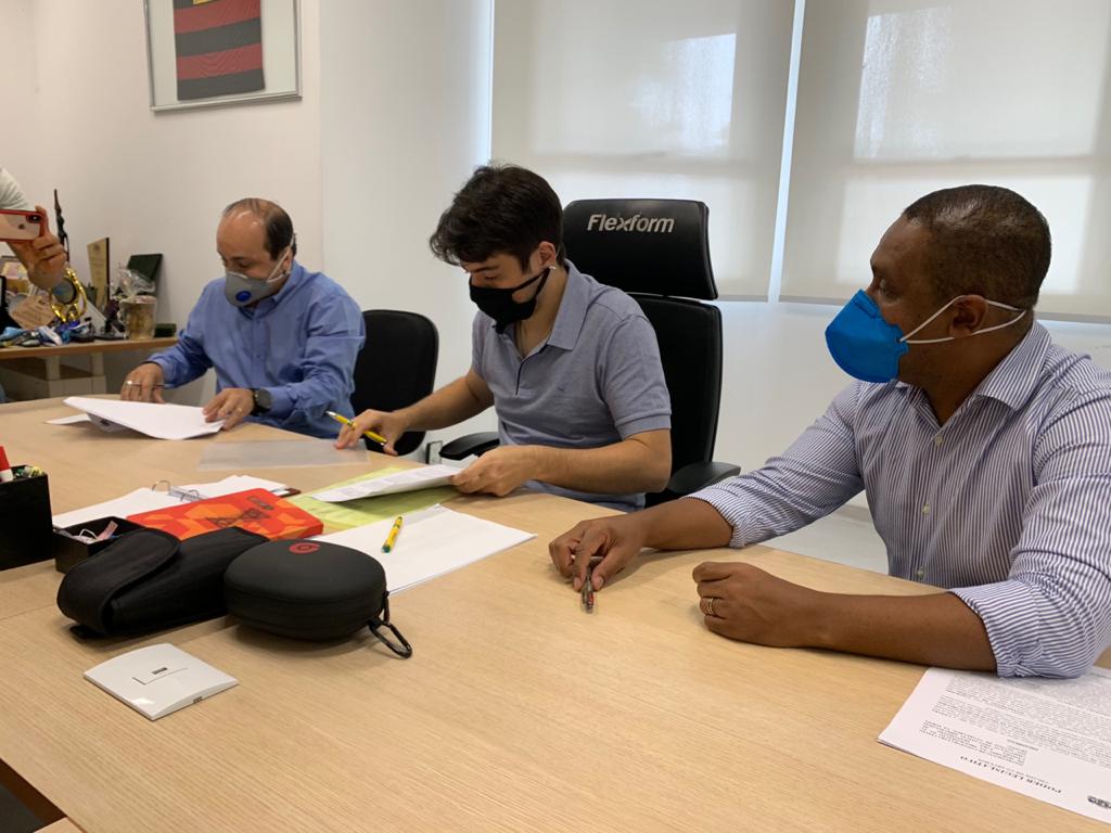 Na manhã desta terça-feira (14) o prefeito Guti assinou, junto com o secretário de Educação, Paulo Matheus, e o presidente da Câmara Municipal de Guarulhos, Professor Jesus, um convênio para exibição de videoaulas pela TV Câmara. As aulas são direcionadas aos alunos da rede municipal que estão temporariamente privados do acesso às escolas por medidas de proteção decorrentes do coronavírus (Covid-19).