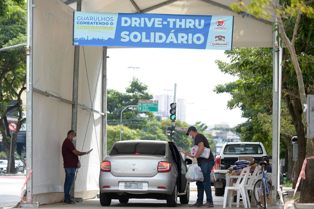 Um total de 2.480 quilos de alimentos, além de centenas de produtos de limpeza e de higiene, foram doados pela população guarulhense neste fim de semana, dias 18 e 19, por meio do Drive-Thru Solidário instalado pela Prefeitura de Guarulhos em frente ao Bosque Maia. As doações estão sendo repassadas às 11 unidades dos Centros de Referência da Assistência Social (Cras), que distribuem cestas básicas emergenciais às famílias em vulnerabilidade social, incluindo aquelas que não estão podendo trabalhar por causa da pandemia do novo coronavírus.