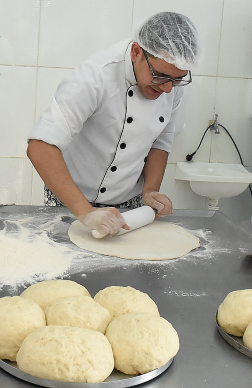 As duas primeiras aulas são ministradas pelo nutricionista David Novais, professor de panificação artesanal de um dos cursos presenciais de Capacitação Profissional e Geração de Renda da Secretaria de Desenvolvimento e Assistência Social, realizados em parceria com o Fundo Social de Solidariedade.