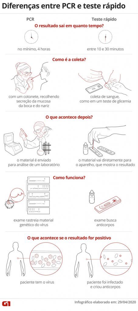 Coronavírus: resumo com as principais características dos testes moleculares e dos testes rápidos — Foto: Guilherme Luiz Pinheiro/Arte G1