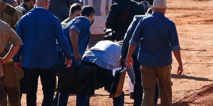 O presidente Jair Bolsonaro sofreu um contratempo ao chegar em Águas Lindas de Goiás, onde participou de evento nesta sexta-feira, 5. Após cumprimentar bombeiros que trabalham na área onde desembarcou de helicóptero, escorregou e caiu de joelhos no chão de terra.
