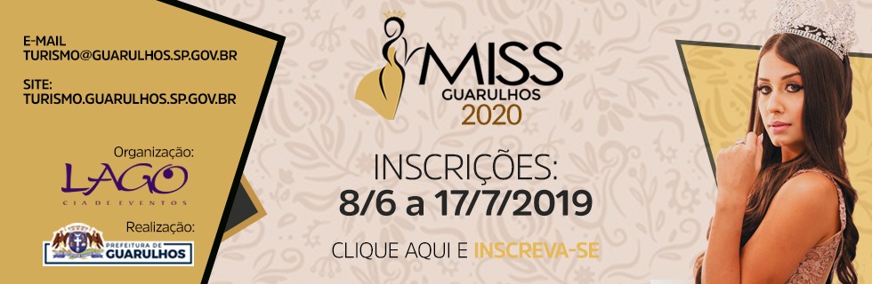 A Prefeitura de Guarulhos abriu as inscrições para o concurso Miss Guarulhos 2020 nesta segunda-feira (8). As candidatas devem realizar a inscrição até o dia 17 de julho, pelo link http://eventos.guarulhos.sp.gov.br/form/concurso-miss-guarulhos-2020.