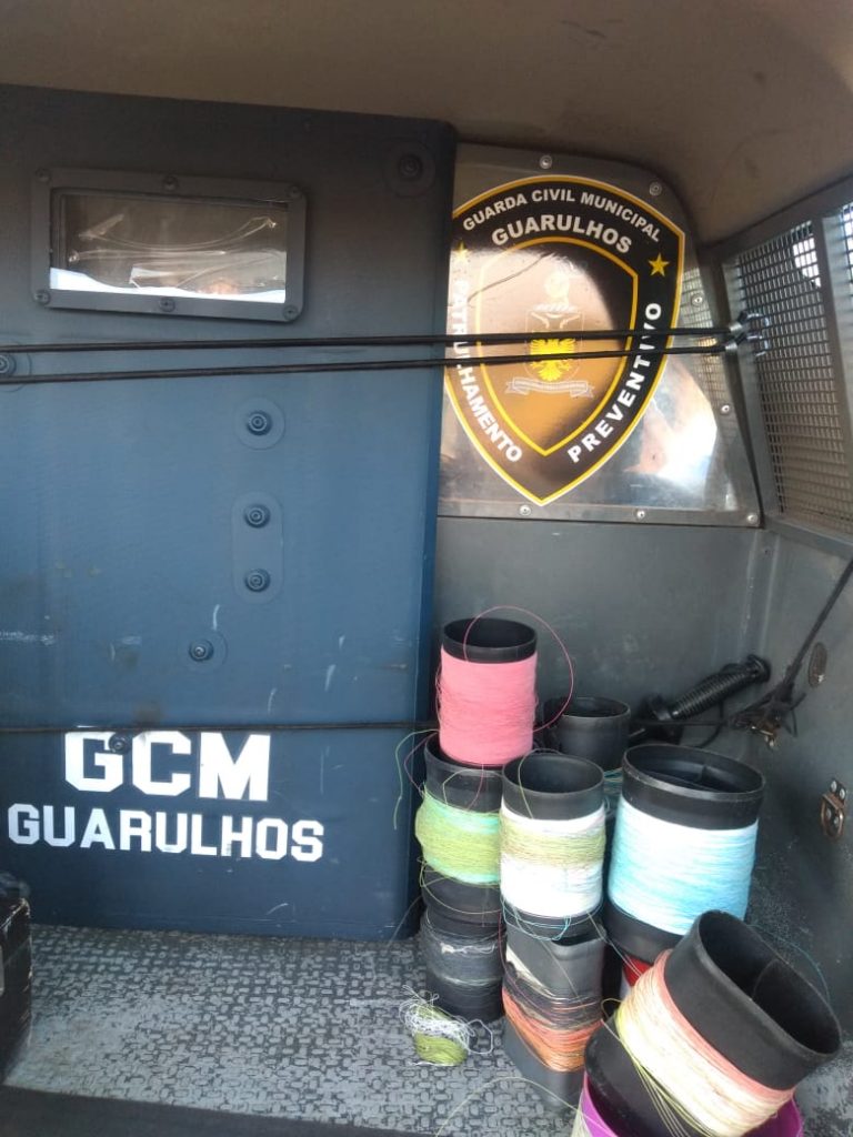 A Guarda Civil Municipal (GCM) de Guarulhos já apreendeu quase 2,5 mil materiais para empinar pipa proibidos desde o início da operação “Vem Buscar”, como carretéis, latas e carretilhas de linha com cerol e linha chilena que seriam utilizadas em diferentes pontos da cidade, entre outros itens que podem causar acidentes graves e até fatais. Neste final de semana e feriado foram apreendidos 56 itens, sendo 16 carretéis, 12 latas de cola, um galão de 3,6 litros de cerol, um galão de 3,6 litros de goma, nove latas de linha cortante e 17 carretilhas. Com o aumento da fiscalização, o número de apreensões tem diminuído.