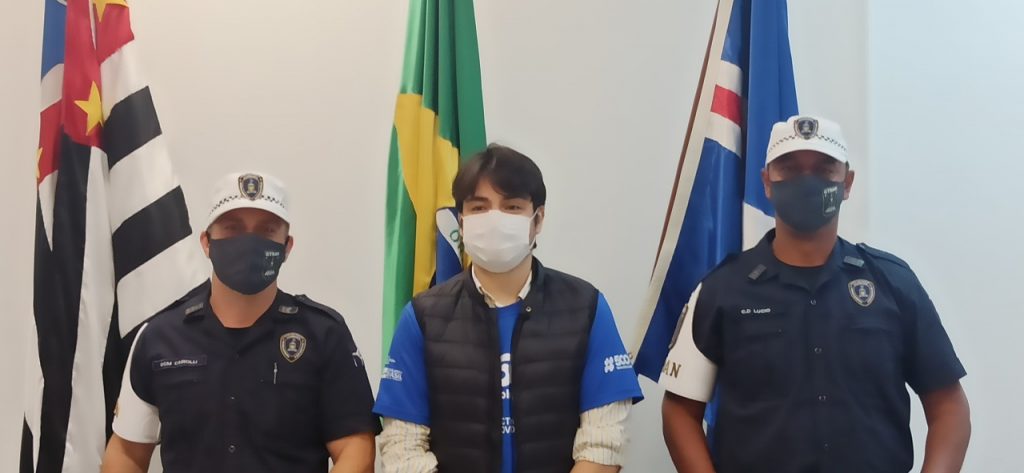 Nesta quarta-feira (1º), no Paço Municipal, o prefeito Guti fez questão de agradecer e homenagear o trabalho dos agentes da Guarda Civil Municipal (GCM) que participaram no dia anterior do socorro imediato a uma criança que estava convulsionando e foi salva graças à iniciativa desses profissionais da segurança. Além do procedimento de fazer a menina de três anos voltar a respirar, eles encaminharam a vítima para a UPA Taboão, que ainda não havia sido inaugurada, onde foi atendida pelos médicos que se encontravam no local.
