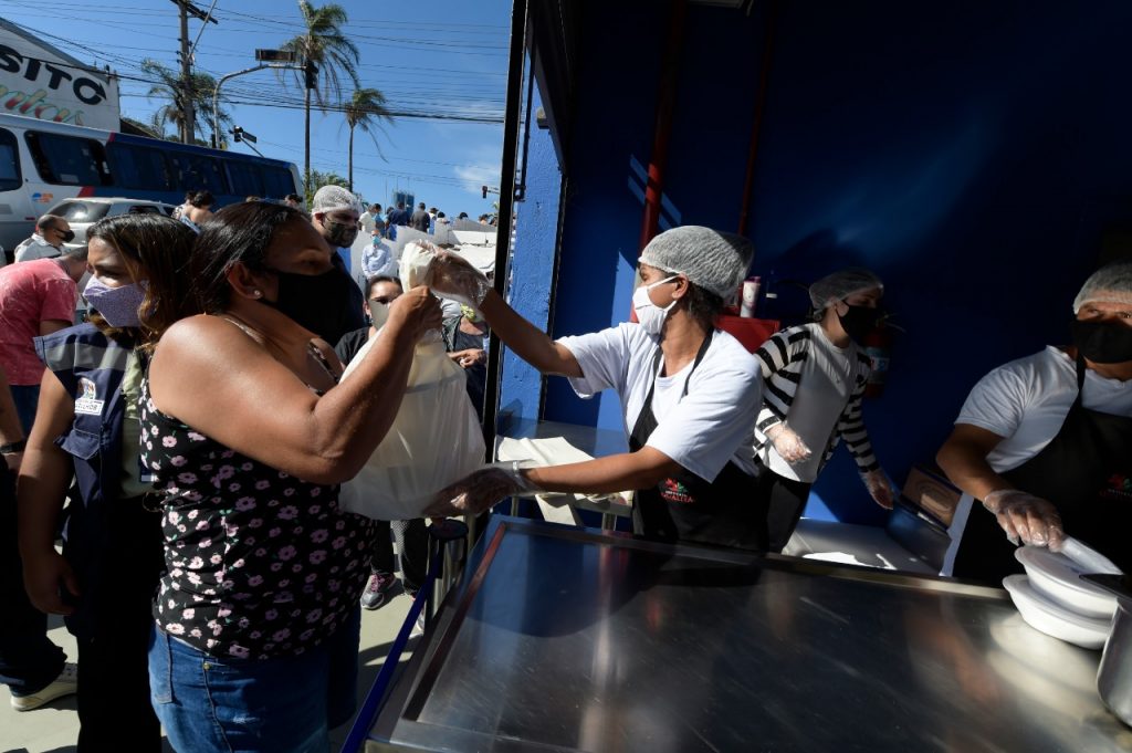 Em razão das recomendações sanitárias de distanciamento social, as refeições são servidas em embalagens descartáveis para consumo fora da unidade, em casa ou no trabalho, sendo no máximo duas marmitas por pessoa. Já as filas contam com marcação no chão e disponibilização de álcool em gel 70% para higienização das mãos dos usuários.