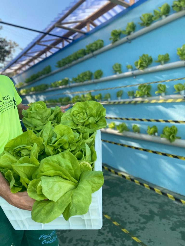 Um grupo de participantes do programa de zeladoria social Cuidando – parceria da secretaria de Desenvolvimento e Assistência Social de Guarulhos com a Subsecretaria de Assuntos Institucionais – colheu pela primeira vez nesta terça-feira (21) alfaces hidropônicas plantadas no Serviço Institucional de Acolhimento Adulto Masculino do Centro, localizado na Vila das Palmeiras. Os vegetais, que foram plantados em água com nutrientes em canos suspensos fixados em um muro por membros da equipe e também por acolhidos, vão servir para a alimentação dos assistidos pelo equipamento e também estão sendo encaminhados a outros equipamentos da Assistência Social.