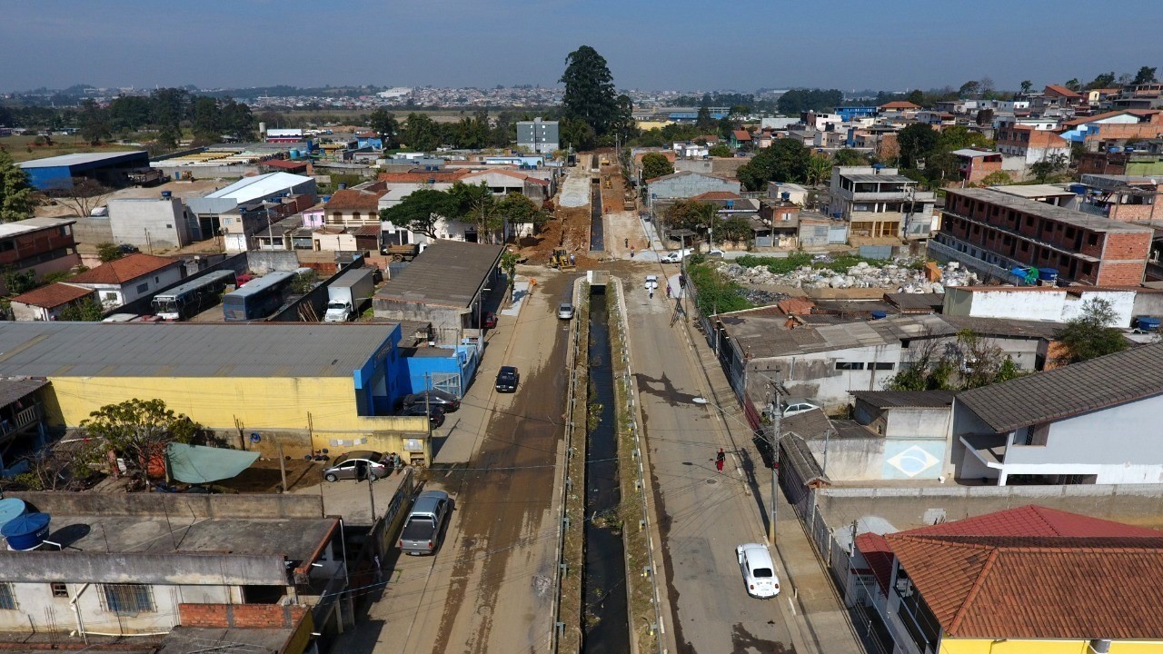 A Prefeitura de Guarulhos executa obras de pavimentação e drenagem na avenida Minas Gerais, ao longo do córrego Iguaçu-Tietê, no Cidade Soberana. As obras foram retomadas no início de março e serão concluídas até o final de outubro.
