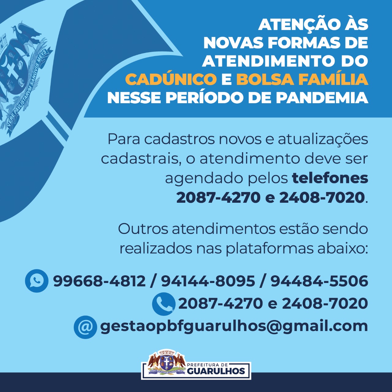 A Central do CadÚnico (Cadastro Único para Programas Sociais)/Bolsa Família, a partir desta segunda-feira (17) passa a disponibilizar o agendamento do atendimento por e-mail, telefone e WhatsApp para os casos de novos cadastros e atualizações cadastrais.