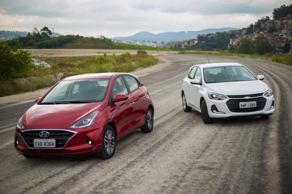 que brigam pela liderança de vendas no Brasil, o Chevrolet Onix e o Hyundai
