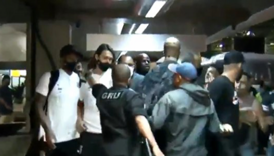Os jogadores do Corinthians desembarcaram na noite deste domingo no Aeroporto Internacional de Cumbica, em Guarulhos, na região metropolitana de São Paulo, sob protesto de torcedores. Os atletas foram cercados e tiveram de correr para entrar no ônibus que aguardava a delegação do lado de fora. Os seguranças do clube e do aeroporto tiveram de intervir para tentar separar os torcedores, que xingavam e ameaçavam os atletas. Não houve agressão física vista nas imagens.