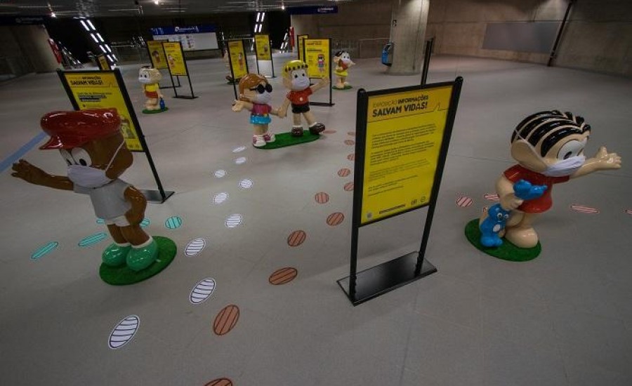 Nas estações Higienópolis-Mackenzie, São Paulo-Morumbi (Linha 4-Amarela) e Moema e Brooklin (Linha 5-Lilás), painéis ilustrados com os personagens mais famosos do Brasil estimulam a higienização das mãos e o uso de máscara, explicam a importância do distanciamento social e esclarecem o que é quarentena e isolamento, além de fornecer dicas de atenção aos sintomas e à transmissão do vírus.