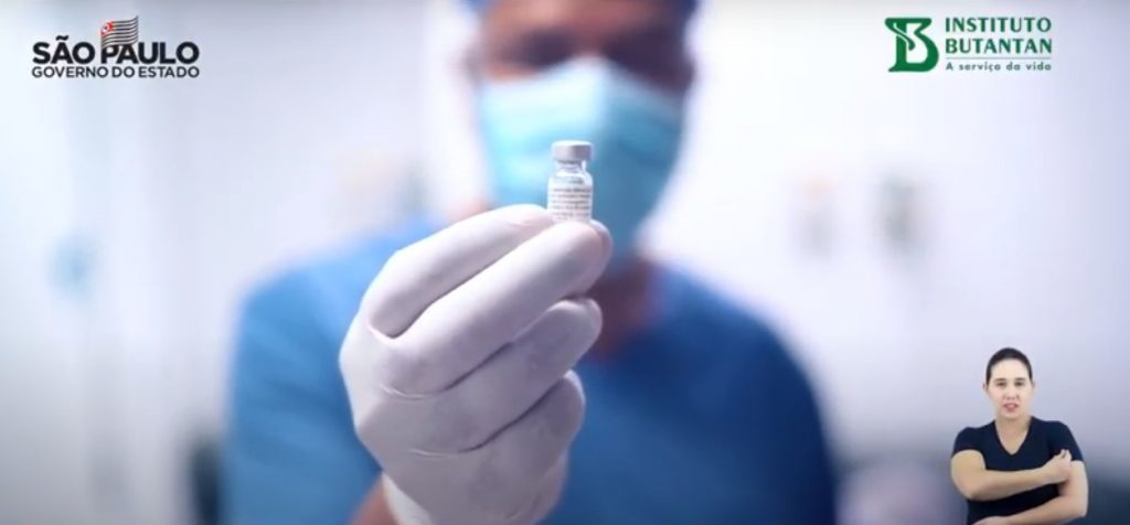 O vídeo, de pouco mais de um minuto, diz que “a vacina do Butantan não é só a vacina que vence o coronavírus”. “É a vacina que vence a incerteza, que traz de volta a esperança”, diz. E reforça: “É do Butantan. É de São Paulo. É do Brasil.”