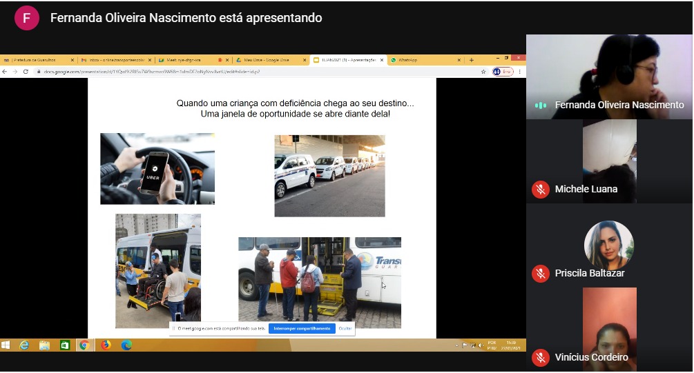Nesta quarta e quinta-feira (27 e 28) a Prefeitura de Guarulhos promoveu o curso online de atendimento à pessoa com deficiência no transporte escolar por meio da Subsecretaria de Acessibilidade e Inclusão (SAI). O curso, que é obrigatório para condutores e auxiliares de transporte escolar, contou com 40 alunos divididos em duas turmas nos períodos manhã e tarde.