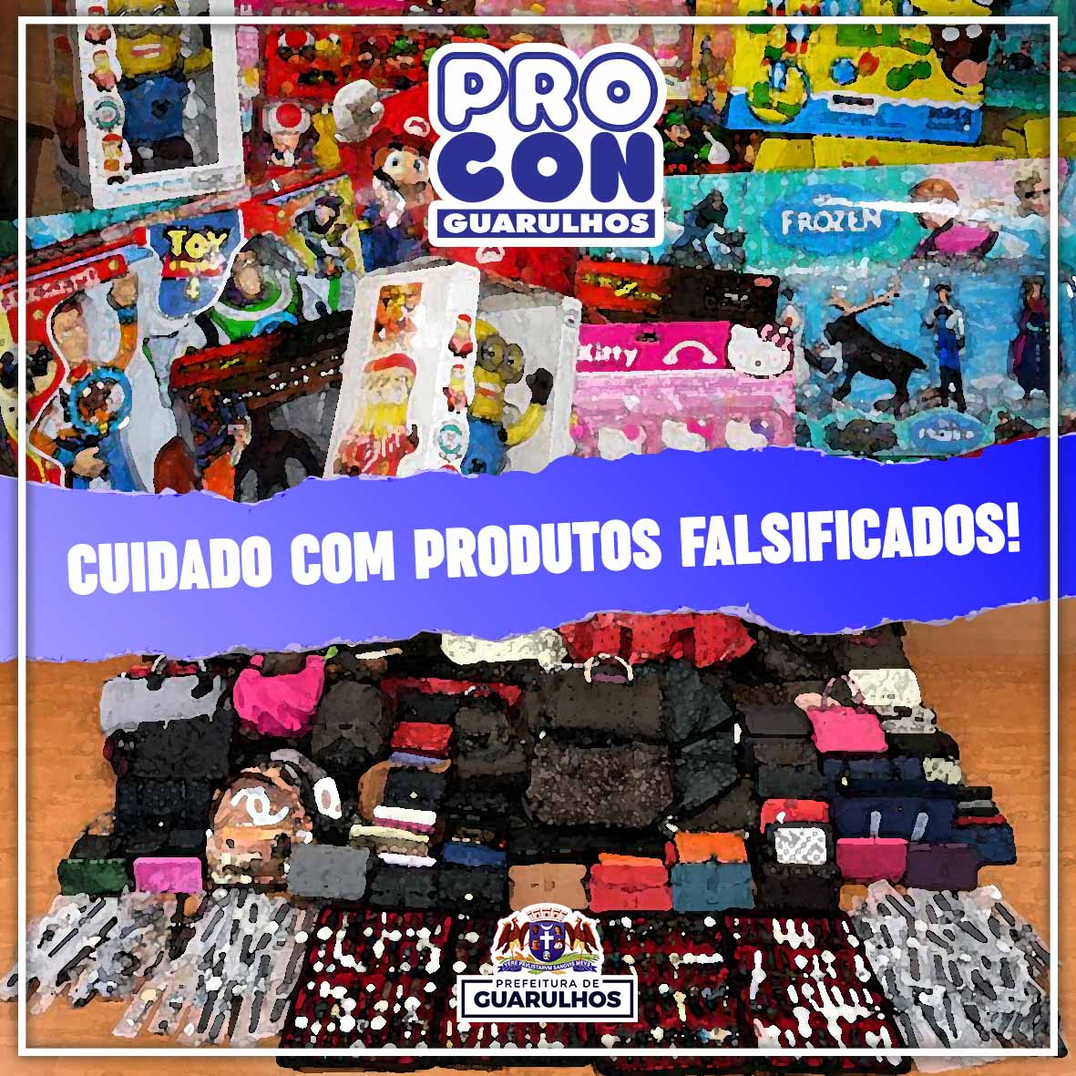 O Procon Guarulhos alerta os consumidores sobre o perigo ao comprar produtos de origem duvidosa ou pirateados, geralmente comercializados por ambulantes. Toda aquisição, venda ou distribuição de produto pirata ou falsificado é considerada crime, conforme o artigo 184 do Código Penal. Portanto, ao adquirir uma mercadoria falsificada, o consumidor está infringindo a lei.
