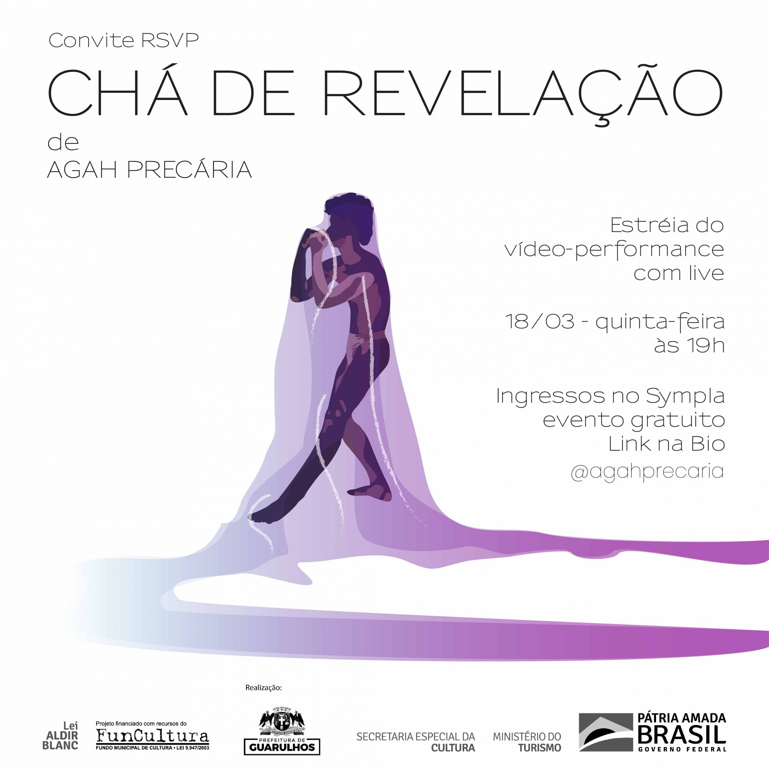 Entre os dias 15 e 18 de fevereiro, das 19h às 21h, acontece o projeto Chá de Revelação, oficina gratuita de vídeo-performance a partir da criação de imagens. O evento é gratuito e tem classificação de 18 anos. O Chá de Revelação é financiado pelo Fundo Municipal de Cultura de Guarulhos (FunCultura) com recursos federais da Lei Aldir Blanc.
