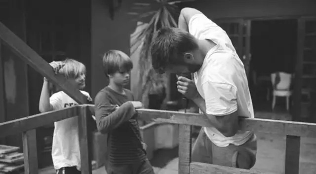 No Instagram, o apresentador do GNT publicou uma foto na qual aparece fazendo o serviço sob o olhar dos filhos, os gêmeos João e Francisco, e com a ajuda deles. “Minha dupla dinâmica ajudando a construir a casinha da irmã”, escreveu ele na legenda.
