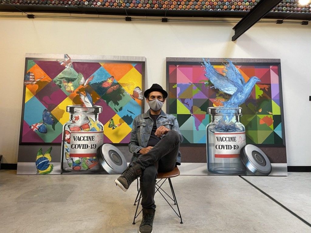 Em vídeo compartilhado no Instagram, Kobra explica que produziu as duas obras no início de 2020 e que ambas retratam a esperança que a vacina proporciona em meio a pandemia do coronavírus.