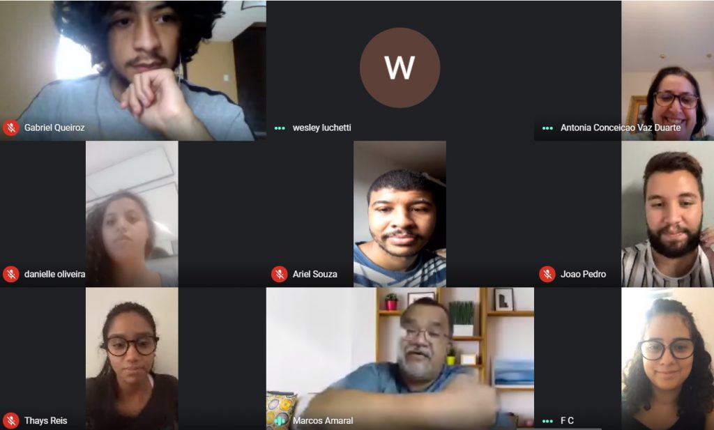 Os encontros entre os agentes de leitura do programa Mais Cultura e os membros da Academia Guarulhense de Letras acontecem quinzenalmente pela plataforma Google Meet. A participação é exclusiva aos bolsistas.