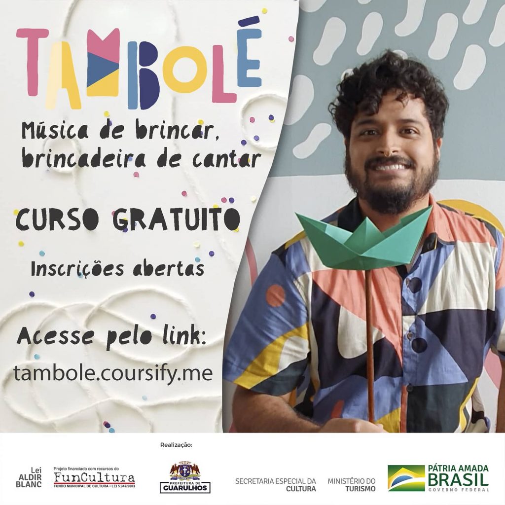 Já estão abertas as inscrições para a oficina online Música de Brincar, Brincadeira de Cantar, uma iniciativa do projeto Tambolé repleta de dicas para o desenvolvimento de jogos e práticas musicais que incentivam o protagonismo e a livre criação das crianças. O Tambolé é realizado por meio do Fundo Municipal de Cultura de Guarulhos, FunCultura, com recursos federais da Lei Aldir Blanc.