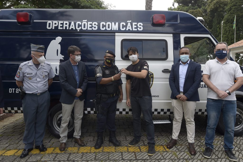 O prefeito Guti entregou nesta quarta-feira uma van Iveco para o Canil da Guarda Civil Municipal (GCM) de Guarulhos. O veículo será usado para transportar cães até os locais onde serão realizados serviços de patrulhamento a pé, em eventos e para apresentações de adestramento e atividades lúdicas com a comunidade.