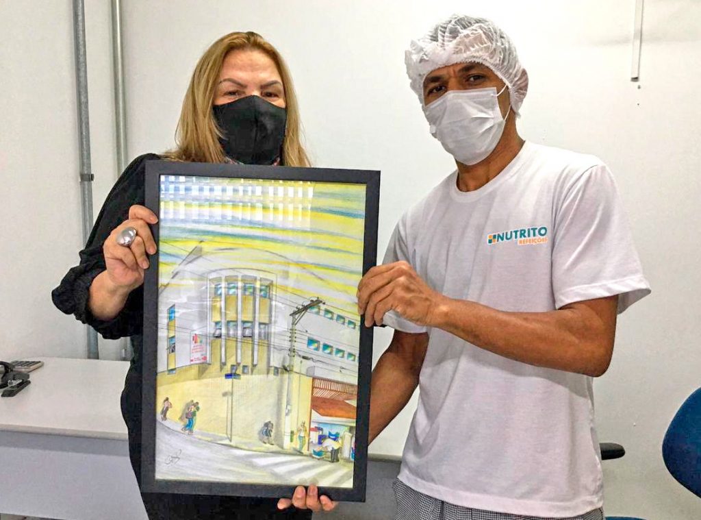 Na quinta-feira (15), ele presenteou o HMCA com um lindo quadro, no qual pintou a fachada do hospital. “É uma lembrança, um agradecimento pelo cuidado que tiveram com minha filha por tanto tempo”, explicou o artista. Desde o nascimento, Rebeca Nunes, que era portadora de deficiência, foi tratada no HMCA.