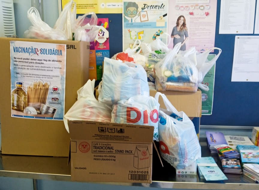 Na semana passada, do dia 12 a 16, a campanha Vacinação Solidária em Guarulhos arrecadou 5.935 quilos de alimentos não perecíveis, sendo 5.435 quilos doados voluntariamente pelas pessoas que foram se vacinar em UBS e no CEU Continental e 500 quilos da empresa Bunzl Prot-Cap São Paulo, que também doou 50 kits de produtos de limpeza. Ao todo, 14.607 quilos de alimentos já foram arrecadados desde 29 de março, quando teve início a ação, que é coordenada pelo Fundo Social de Solidariedade. A doação em UBS não é obrigatória nem interfere no direito de se vacinar.
