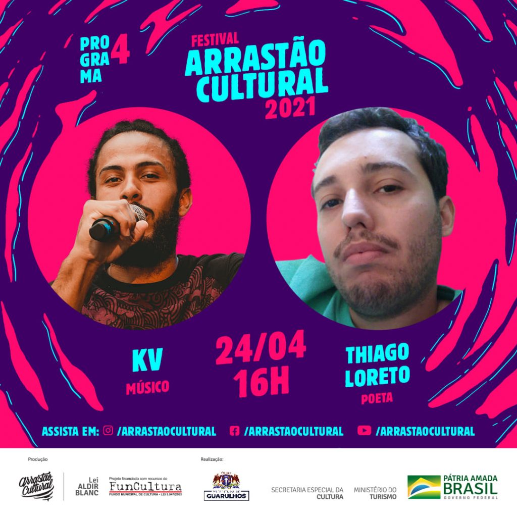 Para completar o programa o Arrastão Cultural convida o escritor Thiago Loreto. Articulador cultural, participou como escritor do jornal Dialética entre 2014 e 2016. Com diversos artistas da cidade, participou do Sarau Carolina Maria de Jesus, movimento social que buscava disseminar a música, cultura e literatura independente da cidade.