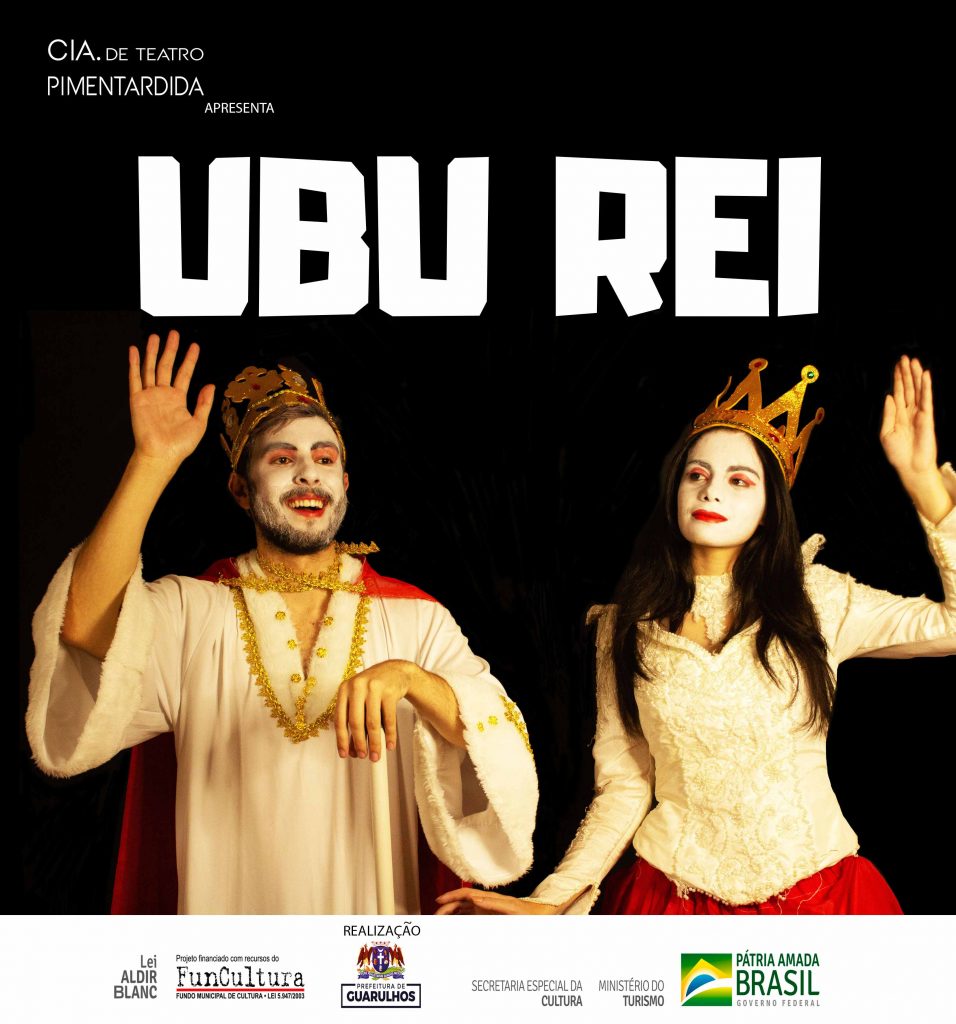 A Companhia de Teatro PimentArdida apresenta Ubu Rei, uma releitura do clássico das artes cênicas escrita em 1896 pelo dramaturgo francês Alfred Jarry. A exibição acontece nos dias 2 e 9 de maio em dois horários, às 18h e às 20h, pelo canal do coletivo no YouTube, no endereço https://www.youtube.com/channel/UCtul5CpldJ8ib4hcv2RTV-g. A classificação do espetáculo é 12 anos.