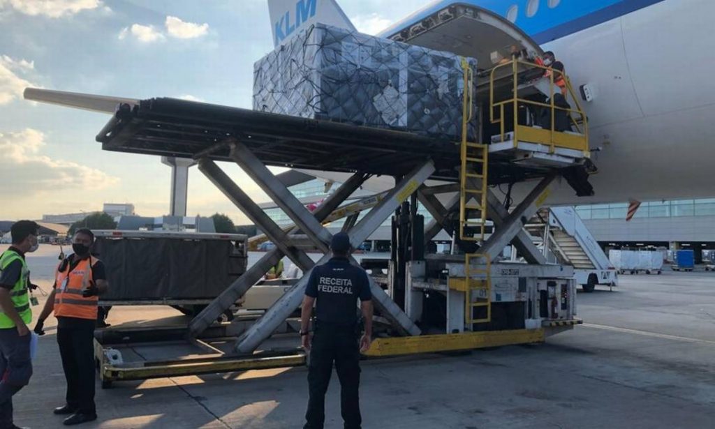 Foram 220,8 mil doses recebidas no sábado e mais 3,8 milhões desembarcadas no domingo no Aeroporto de Guarulhos.