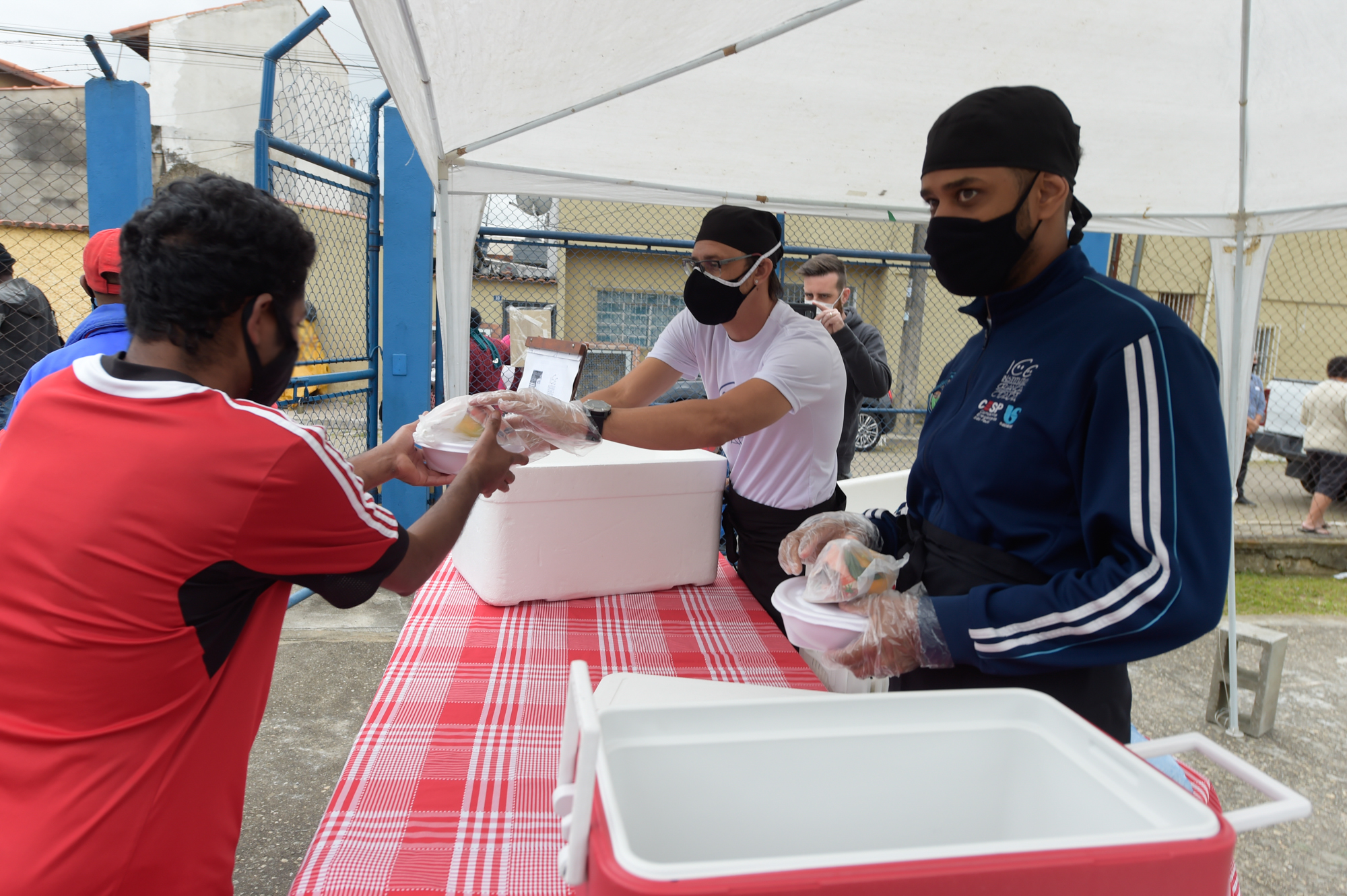 Os alimentos são acondicionados em marmitas e entregues para que sejam consumidos em casa, evitando a aglomerações de pessoas. As senhas são distribuídas 15 minutos antes e é disponibilizado álcool em gel para os atendidos.