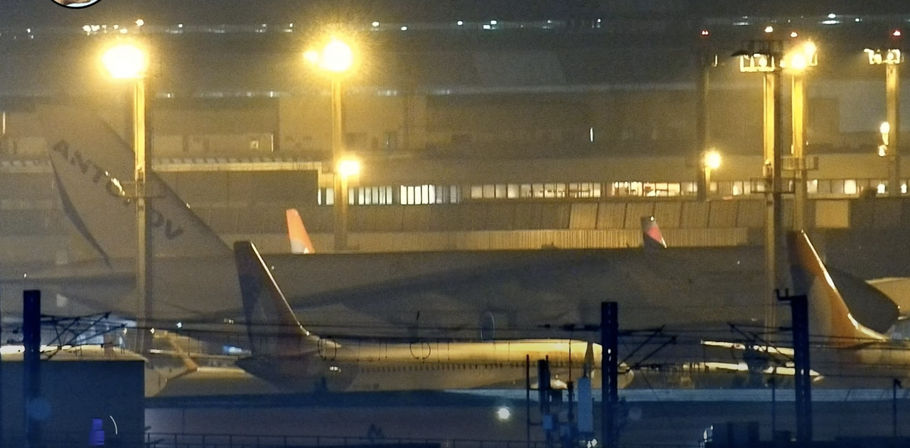 Durante um vídeo, antes da decolagem, é possível ver a diferença gritante de tamanho do avião Antonov AN-124 ao lado de aviões menores. O avião esteve na cidade de Guarulhos para transportar uma carga de 60 toneladas de EPIs (Equipamentos de Proteção Individual).