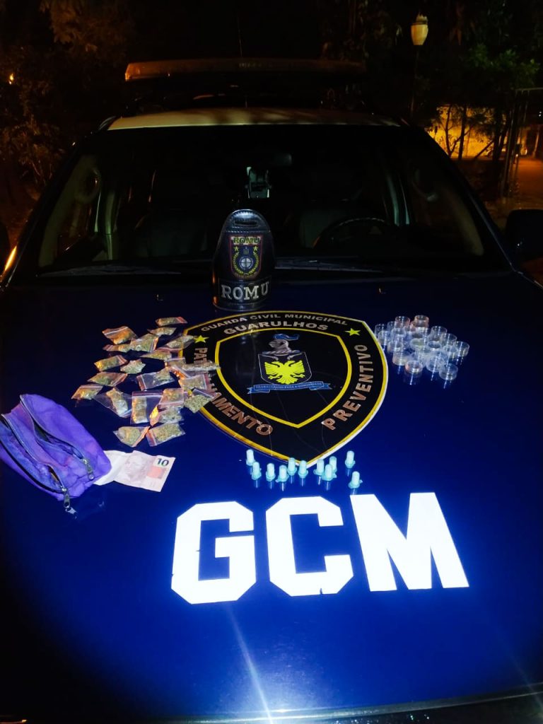 A Guarda Civil Municipal (GCM) de Guarulhos fez duas apreensões de drogas, em poder de suspeitos de tráfico, na noite deste domingo (23) em um intervalo de apenas uma hora. A primeira ocorrência aconteceu na praça Brahma, na Vila Tijuco, por volta das 19h. Um menor foi avistado pela viatura e se livrou de um estojo que carregava nas mãos.