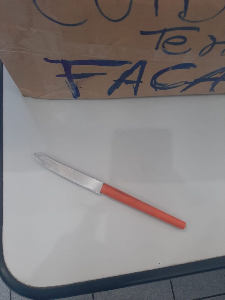 Nesta quinta-feira (27), agentes de segurança do Centro de Detenção Provisória II de Guarulhos impediram a entrada de uma faca na unidade prisional. A arma branca teria sido enviada pela mãe do detento. O material foi apreendido e foi instaurado procedimento administrativo para apurar os fatos.