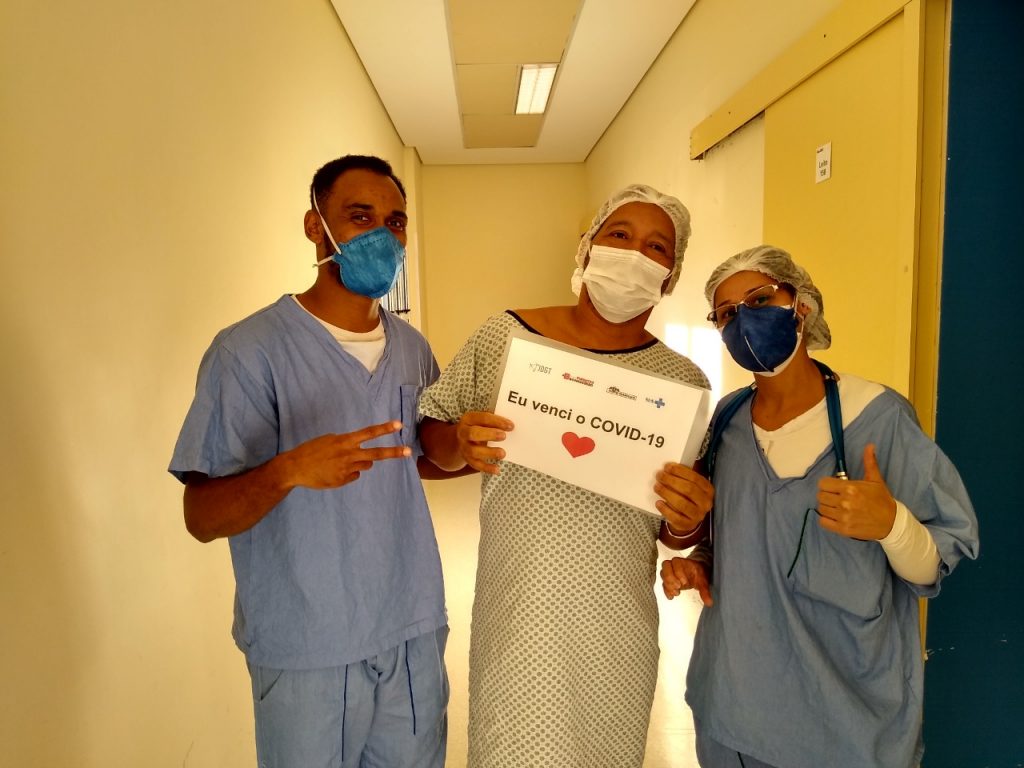 “Eu venci o Covid. Hoje recebo alta do hospital, depois de tantos dias difíceis e de muita luta. Primeiro, agradeço a Deus! Agradeço aos meus familiares, amigos e à toda equipe de enfermagem do hospital Pimentas, que me tratou com muito amor e carinho. Eu estou muito feliz!”, disse Samuel.