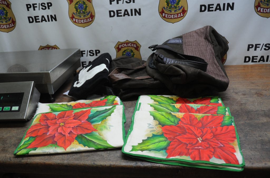Policiais federais, que fiscalizavam os passageiros de voo com destino ao Catar, selecionaram uma pessoa para inspeção das bagagens por meio do aparelho de raio-x. Após a análise das imagens, sua bagagem foi aberta e os policiais encontraram toalhas de mesa, cujos forros estavam engomados com cocaína.