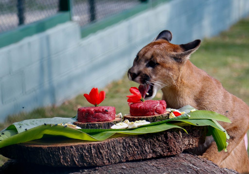 Mais uma vez os servidores do Zoológico de Guarulhos prepararam bolo e presentes para comemorar o aniversário de um de seus moradores. Desta vez, a festa foi para a onça-parda Scott, que completou um ano de vida nesta terça-feira (1º). Muito reservado, o felino demorou a interagir com os brinquedos e a devorar as porções de carne decoradas com flores e folhas.