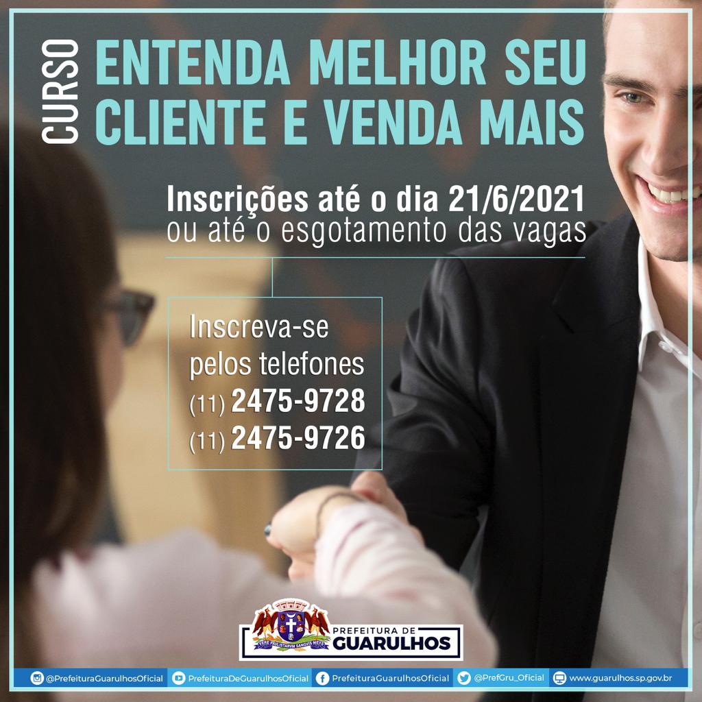 O objetivo do curso, que é uma parceria da Prefeitura de Guarulhos com o Sebrae, é fazer com que o participante venda mais, aumentando a compreensão do comportamento dos seus clientes. As aulas estão previstas para terem início em 5 de julho e serão transmitidas ao vivo pela plataforma Microsoft Teams.