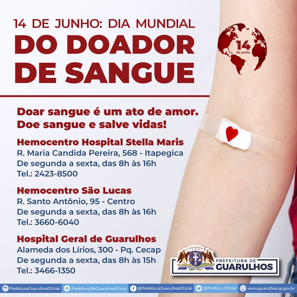 Em alusão ao Dia Mundial do Doador de Sangue, celebrado em 14 de junho, a Prefeitura de Guarulhos lançou a campanha “Doar sangue é um ato de amor: doe sangue e salve vidas”, a fim de conscientizar servidores e munícipes sobre a importância da contribuição aos hemocentros da cidade mesmo em meio à crise sanitária.