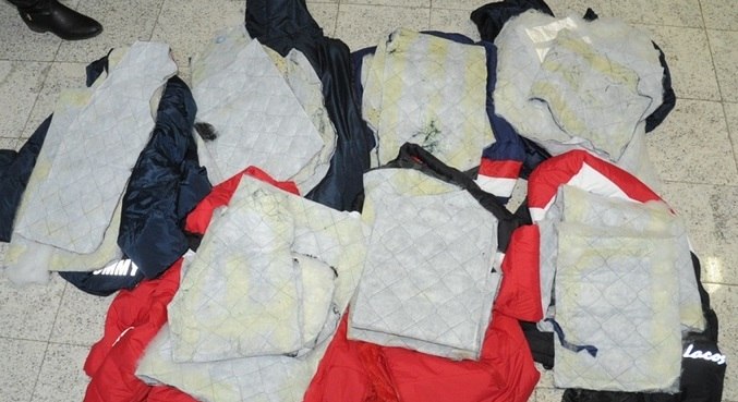 Na bagagem os agentes detectaram uma substância orgânica e, depois, encontraram pequenos pacotes contendo cocaína no forro de sete casacos. Quando ouvidas, mãe e filha, receberam voz de prisão.