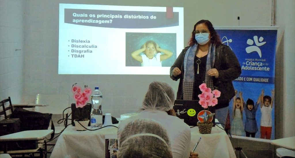 Distúrbios de aprendizagem foi o tema da palestra ministrada pela neuropsicopedagoga clínica Carolina Pereira Ramos Gomes na última sexta-feira (18) no Hospital Municipal da Criança e do Adolescente (HMCA), administrado pelo IDGT. Para um público composto por colaboradores da unidade, primeiro a especialista explicou o distúrbio. Em seguida, falou sobre os tratamentos, a prevenção e quais as principais variações do problema.