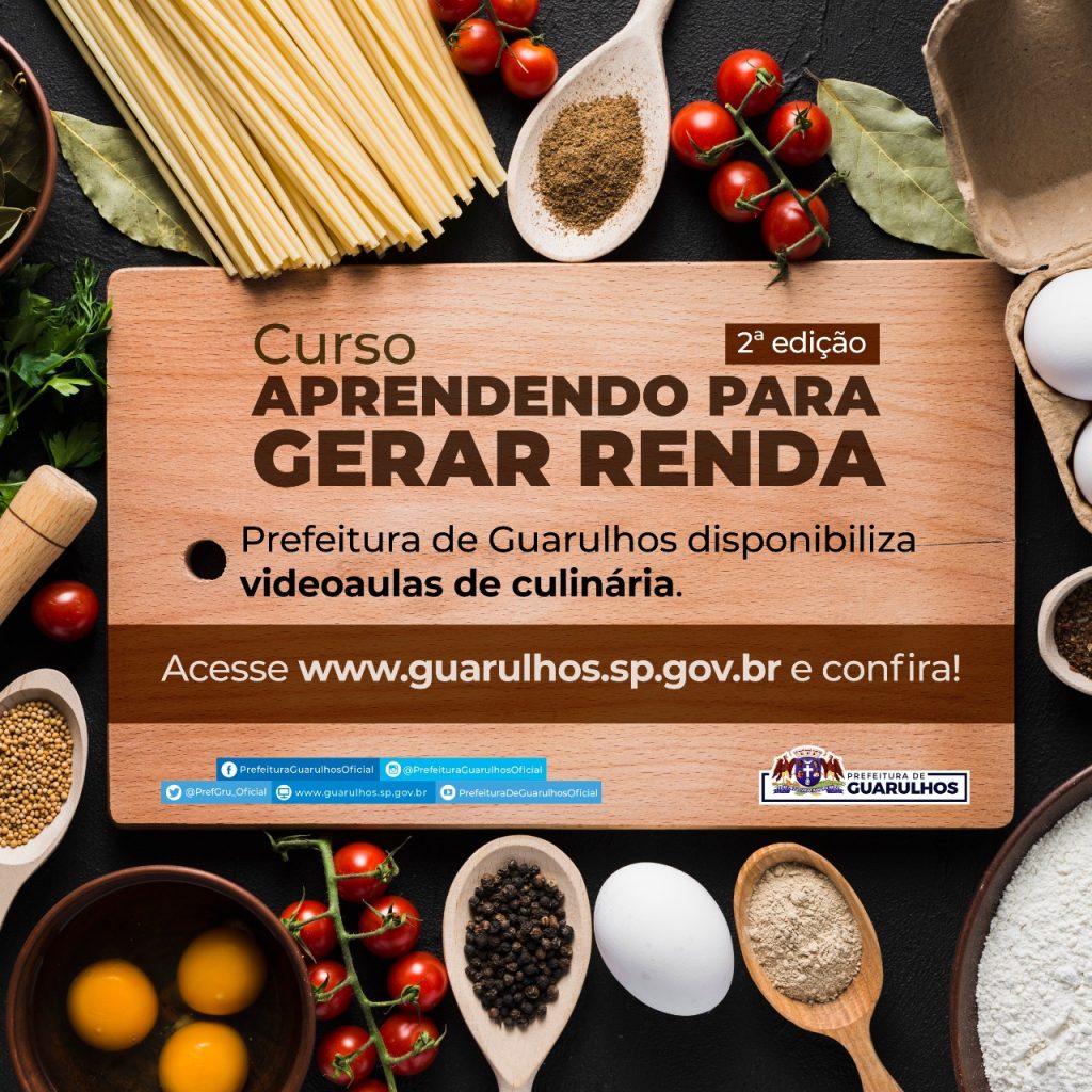 A Prefeitura de Guarulhos retoma na próxima segunda-feira, dia 19, o projeto “Aprendendo pra gerar renda”, de videoaulas de culinária, as quais serão disponibilizadas no site www.guarulhos.sp.gov.br. Nesta segunda edição serão nove videoaulas ministradas pelos formadores dos cursos de capacitação profissional e geração de renda, da Secretaria de Desenvolvimento e Assistência Social, em parceria com o Fundo Social de Solidariedade. Elas serão postadas sempre às segundas-feiras, a partir das 19h30.