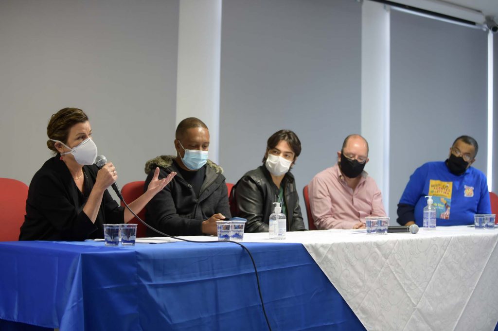 A Secretaria de Cultura de Guarulhos lançou a nova fase do Programa Escola Viva de Artes Cênicas, iniciativa marcada pela multidisciplinaridade e que conta com profissionais das áreas de dança, teatro e circo. O prefeito Guti, o vice-prefeito e secretário de Cultura, Professor Jesus, e o diretor do Conservatório de Guarulhos, Emiliano Patarra, participaram do evento de lançamento, que aconteceu na manhã desta segunda-feira (19) na sede da Secretaria de Educação com a presença de jornalistas e dos profissionais selecionados para atuação no programa.