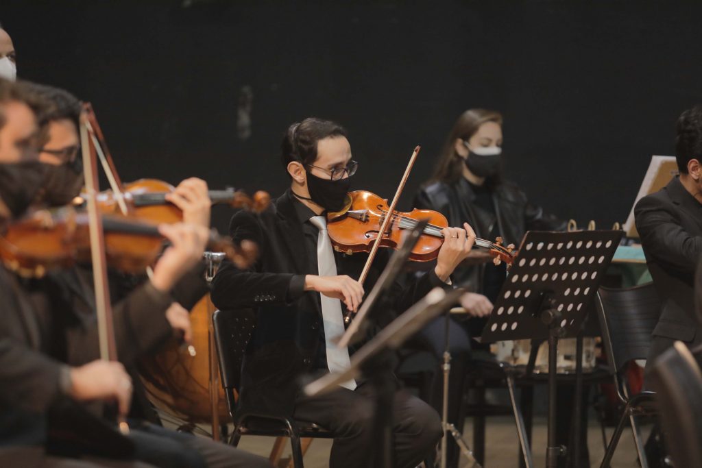 Ao longo do lançamento do programa os participantes prestigiaram concerto da Orquestra GRU Sinfônica, sob regência do maestro Emiliano Patarra, enquanto recebiam orientações de funcionamento do programa nesse momento de retomada pós-pandemia.