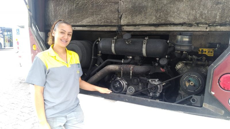 Técnica em eletroeletrônica de automação, Rosângela da Silva Gonçalves Barros, de 33 anos, trabalha há 13 anos na Metra, concessionária que opera as linhas gerenciadas pela EMTU na região do ABC. “Atuo na área de manutenção elétrica desde 2010, arrumando a parte elétrica dos ônibus e trólebus, incluindo iluminação, módulos, motor de partida, alternador e sensores. Quando conto que sou eletricista, muitos se surpreendem, dizem até que ‘sou muito feminina’ para estar nessa área, já que é um serviço considerado pesado por sujar e exigir força física. Mas é gratificante saber que muitos admiram meu trabalho. Algumas mulheres me falam que sou um incentivo para elas”, diz Rosângela.